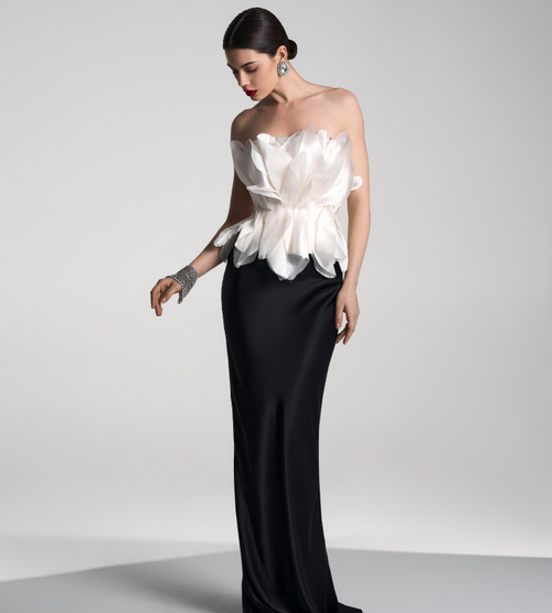 В коллекциях DV комбинируются бархат, кружево, шерсть и шелк, добавляя каждому образу глубину и многослойность, а палитра цветов состоит из благородных и актуальных оттенков, отражающих ДНК бренда.